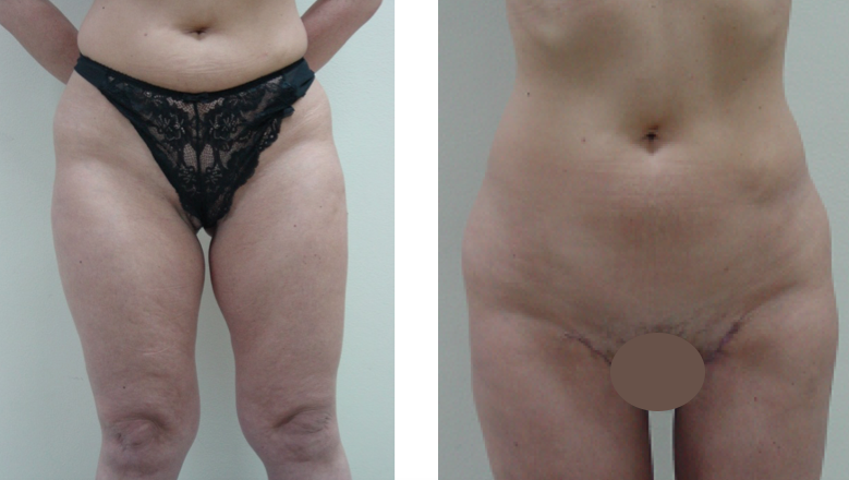 Esta condición se trata con lipoaspiración y resección del exceso de piel con levantamiento y fijación del muslo en el pliegue de la ingle y del pliegue glúteo, resultando en un muslo más delgado,liso y estilizado.Los casos más solicitados son aquellos en que inicialmente se han realizado cirugía bariátrica para tratar la obesidad y enfermedades metabólicas.